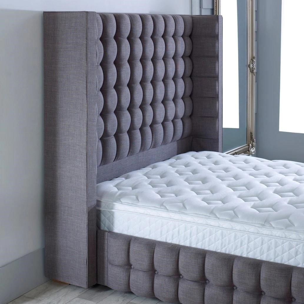 Emperor superb bed frame is a head-turner in any bedroom, a celebrity favorite beautifully winged headboard and upholstered side panels and foot board to match which will easily work with both traditional and modern interior