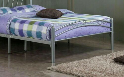 Metal Solid Bed Double 4ft-6inch Ava Dorset Silver Bedframe Bedroom Furniture